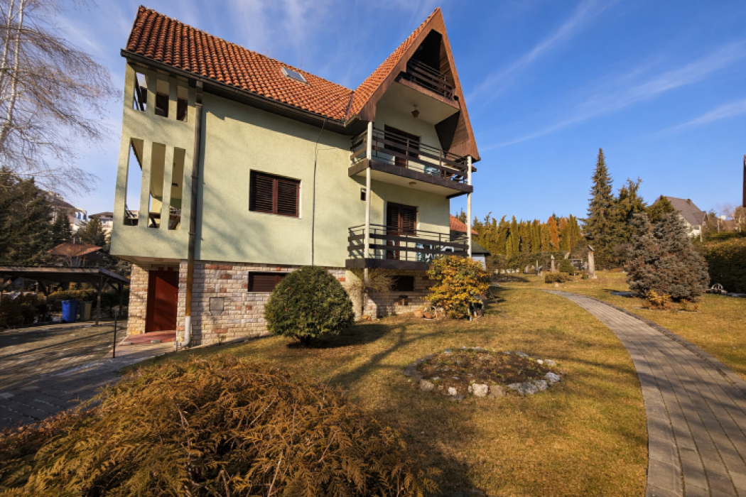 Additionally, the property includes several auxiliary structures, such as two summer houses, a storage shed, a boiler room, and a carport, and is fully connected to the sewage system. Heating is centralized, with its own boiler and radiators on every level, while the dedicated boiler room ensures practicality and energy efficiency. The plot is carefully landscaped and surrounded by greenery, providing complete privacy and tranquility, with an asphalted driveway leading directly to the yard, offering easy access.