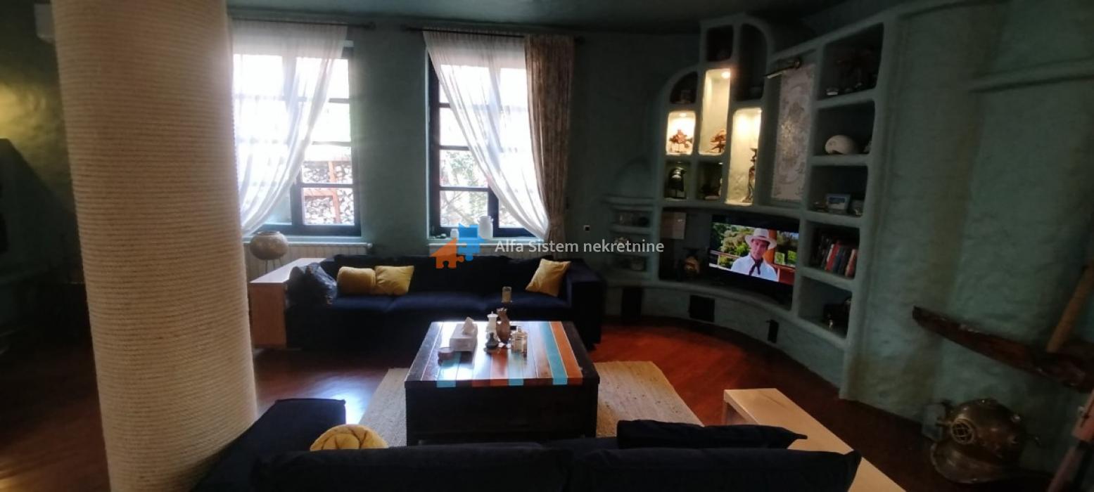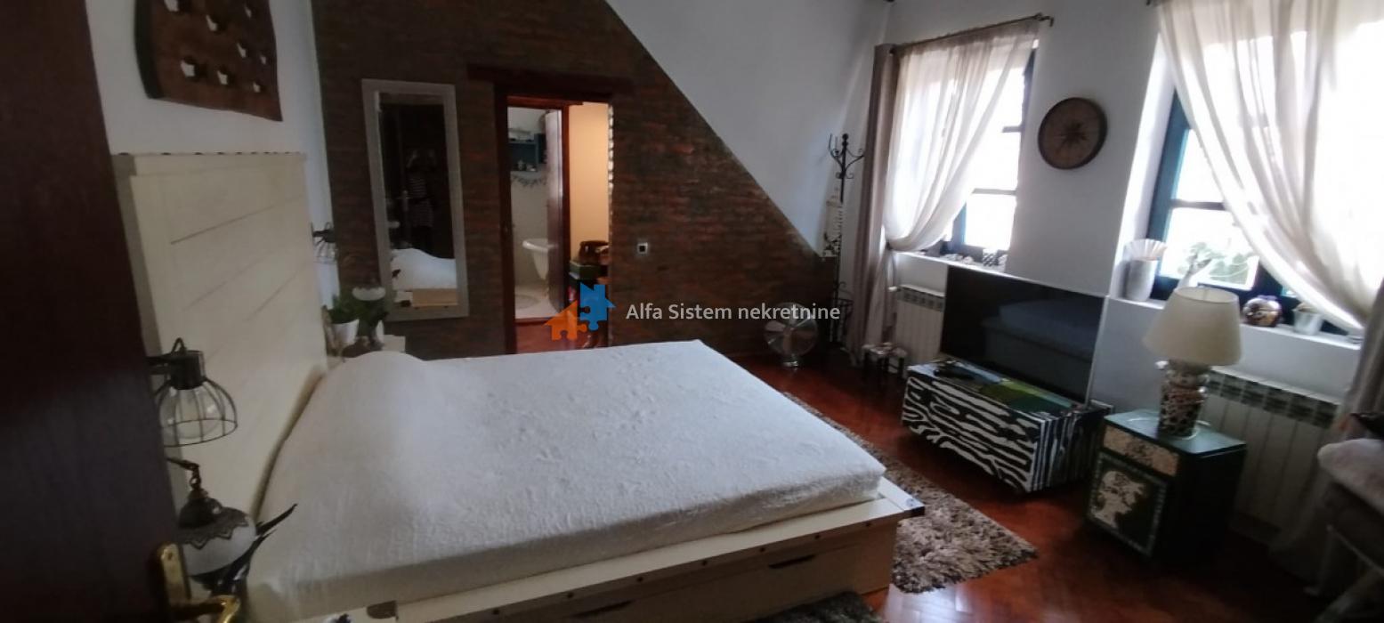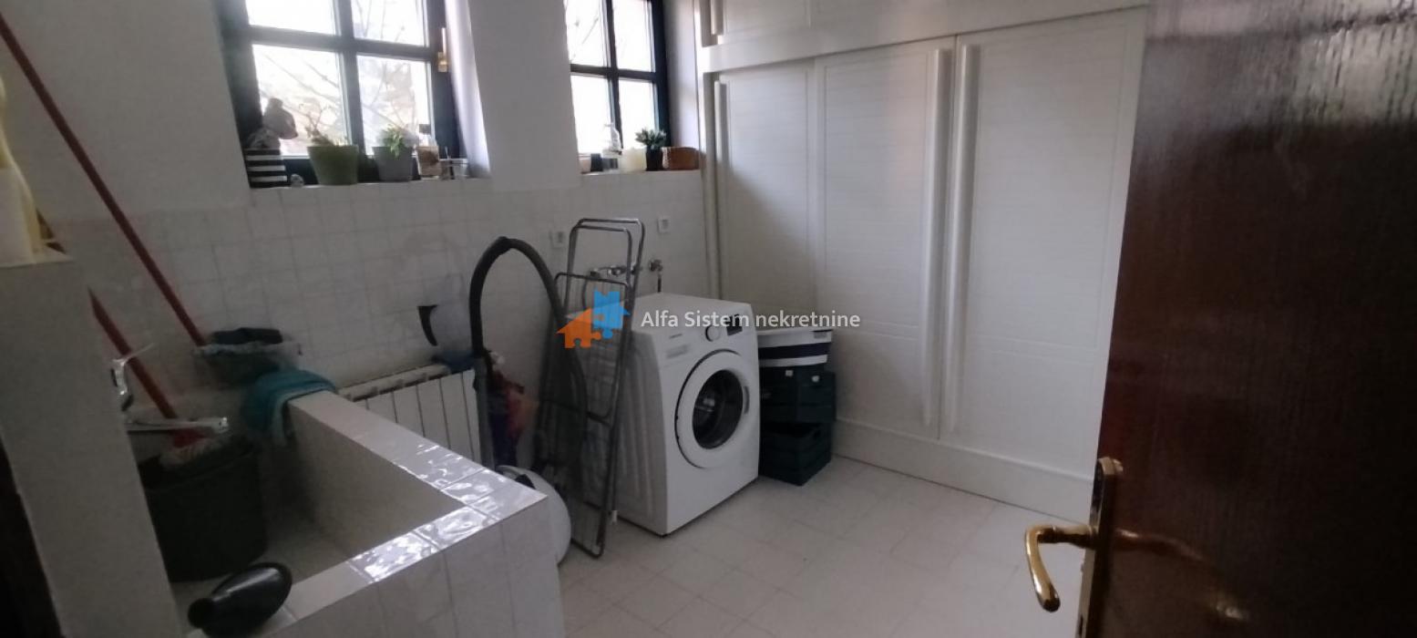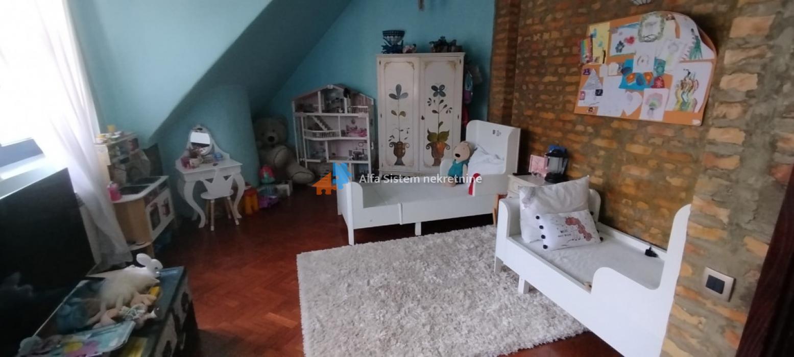 Porodična kuća se nalazi na opštini Voždovac. Kuća je 360 m2, na 5 ari placa, poseduje grejanje na gas, kanalizaciju, dve velike dnevne sobe, kuhinju 36m2, četiri spavaće sobe, 5 kupatila, vešernicu, vinski podrum., tri prostorije ostave. Takodje poseduje i garažu i 5 +parking mesta, video nadzor, elektronsku kapiju, video interfon.