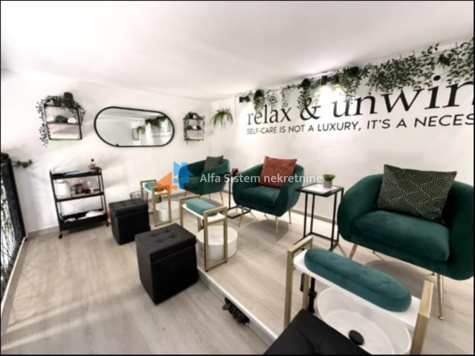 Potpuno je opremljen i trenutno uređen kao kozmetički salon, što ga čini idealnim za nastavak iste ili slične delatnosti.