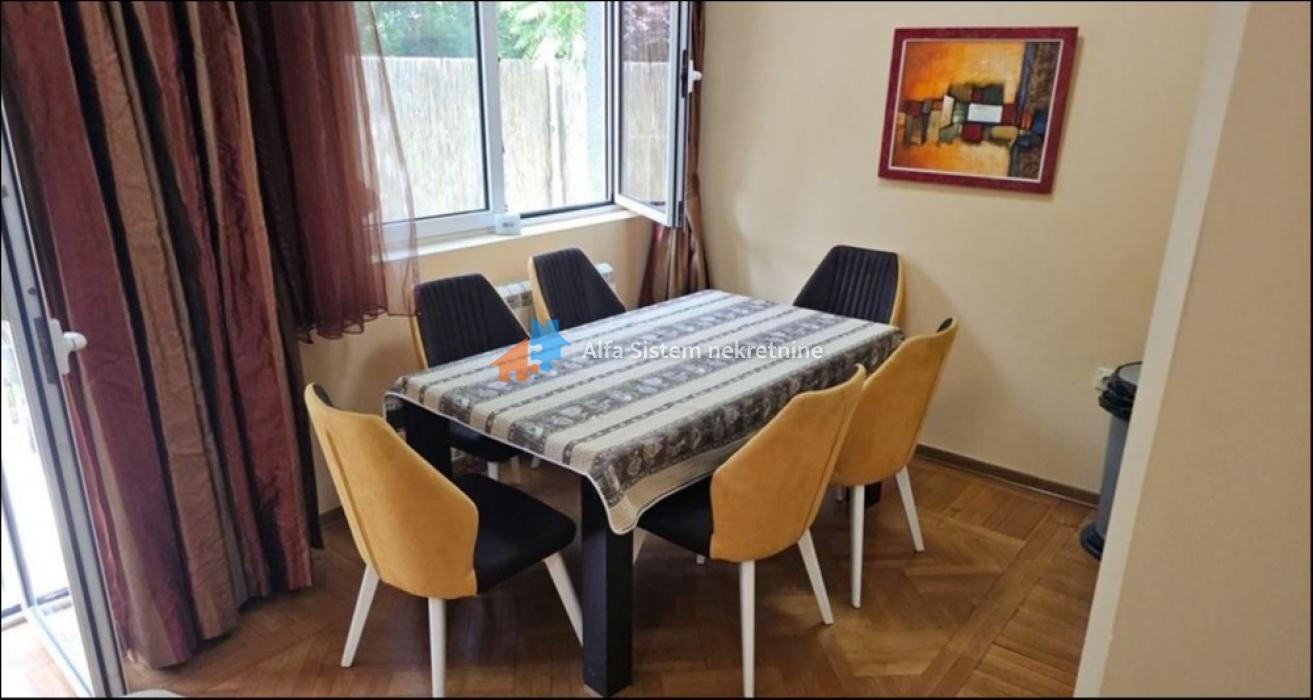 Stan je opremljen i kompletno namešten, spreman za useljenje. Iz stana se izlazi na uređenu baštu površine 50 m², idealnu za svakodnevni odmor i uživanje u tišini i zelenilu.