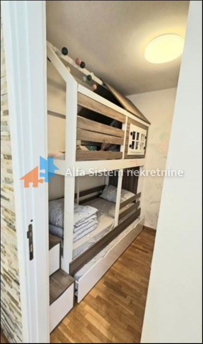 Stan je kompletno namešten i opremljen modernom kuhinjom sa ugradnom sudomašinom, rernom, pločom, frižiderom i aspiratorom, kao i klima uređajem. U spavaćoj i dnevnoj sobi nalaze se veliki plakari preko celog zida, dok se u hodniku nalazi dodatni plakar i cipelarnik. Po potrebi je moguće dodati mašinu za veš, krevete ili drugi nameštaj.