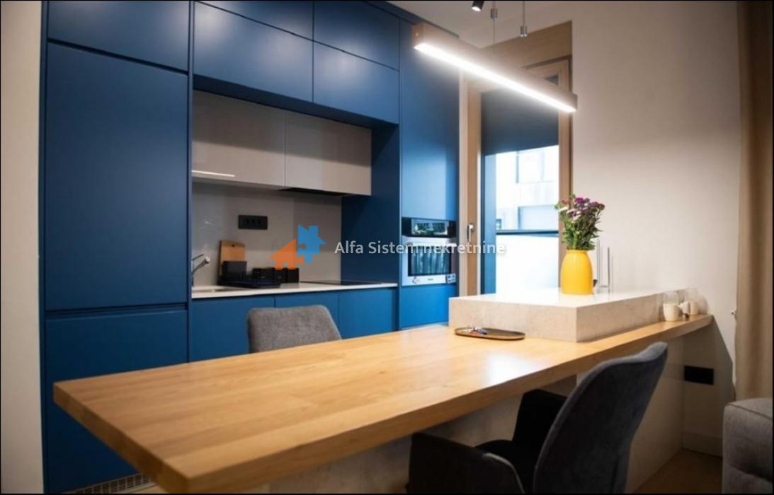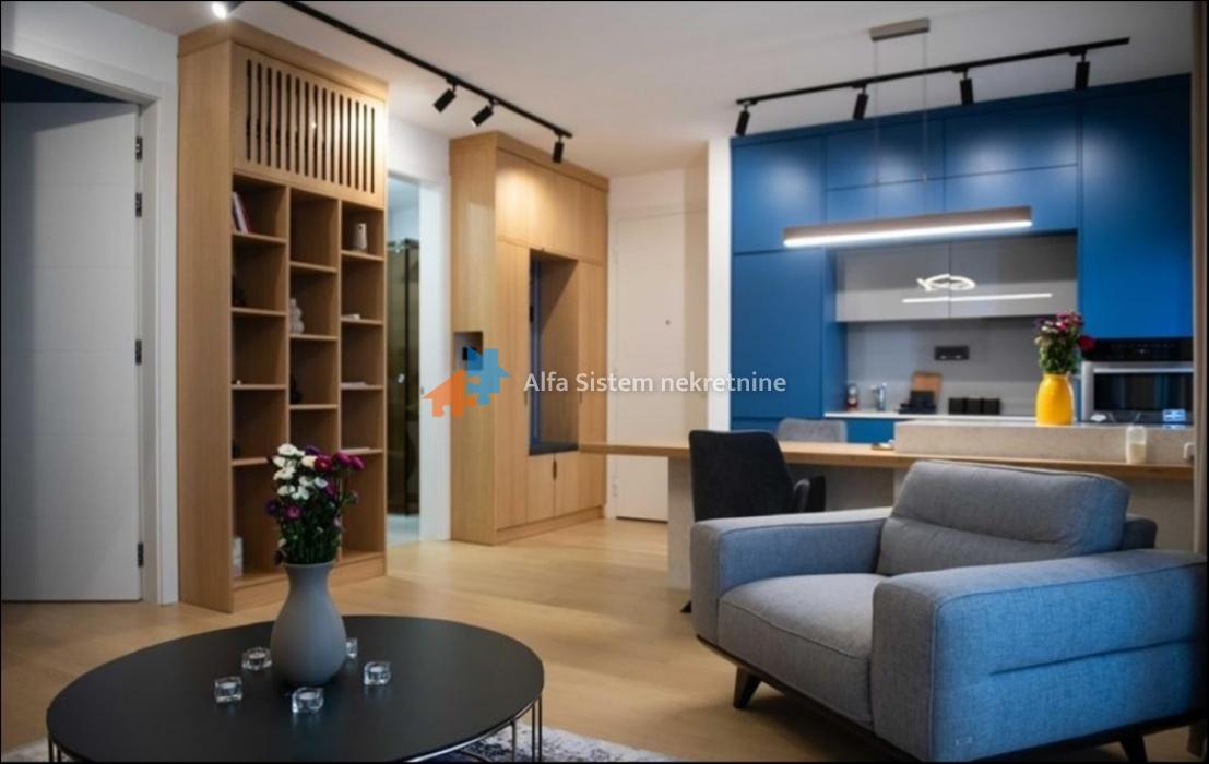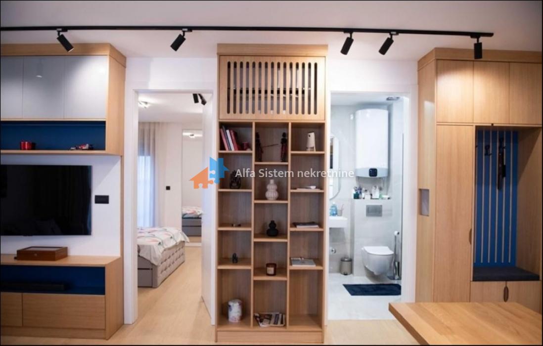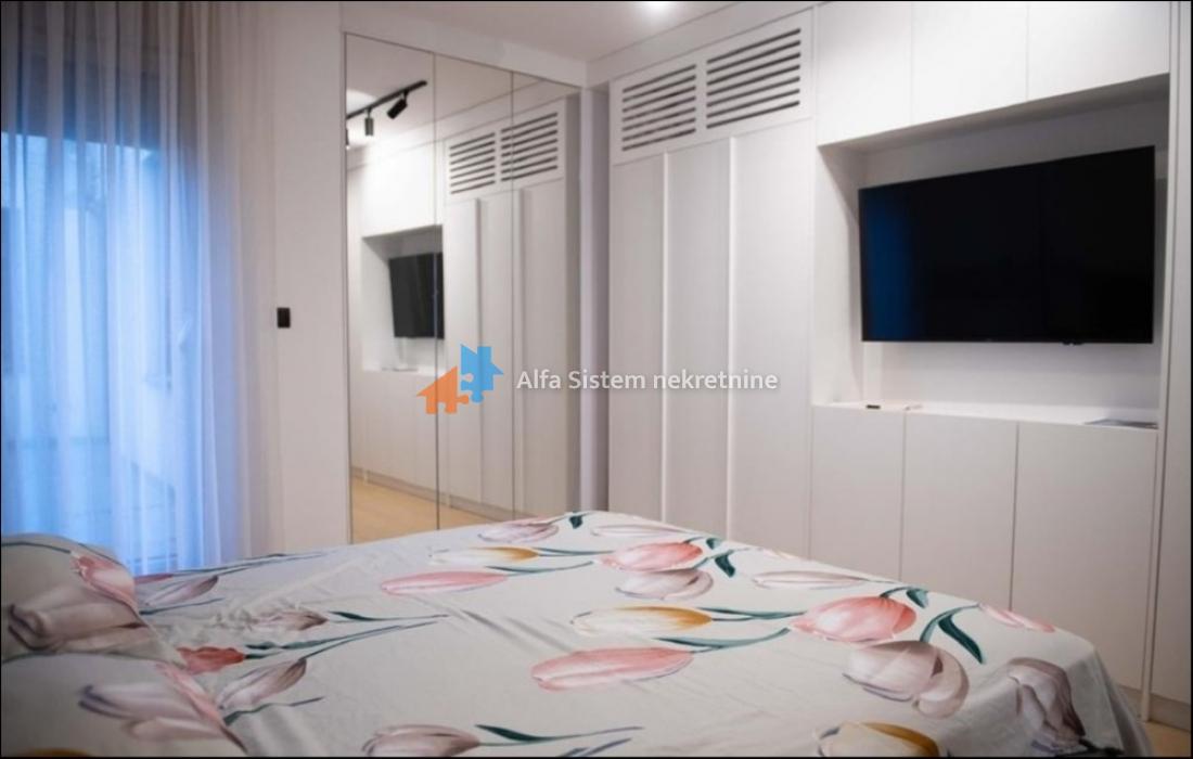 Stan je kompletno opremljen modernim i luksuznim nameštajem, kao i kvalitetnim kućnim aparatima. Grejanje je centralno, sa kalorimetrom – po potrošnji.