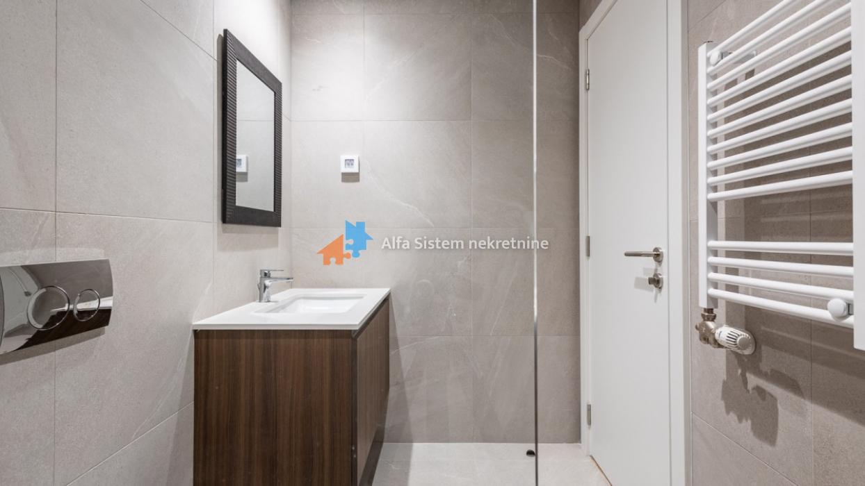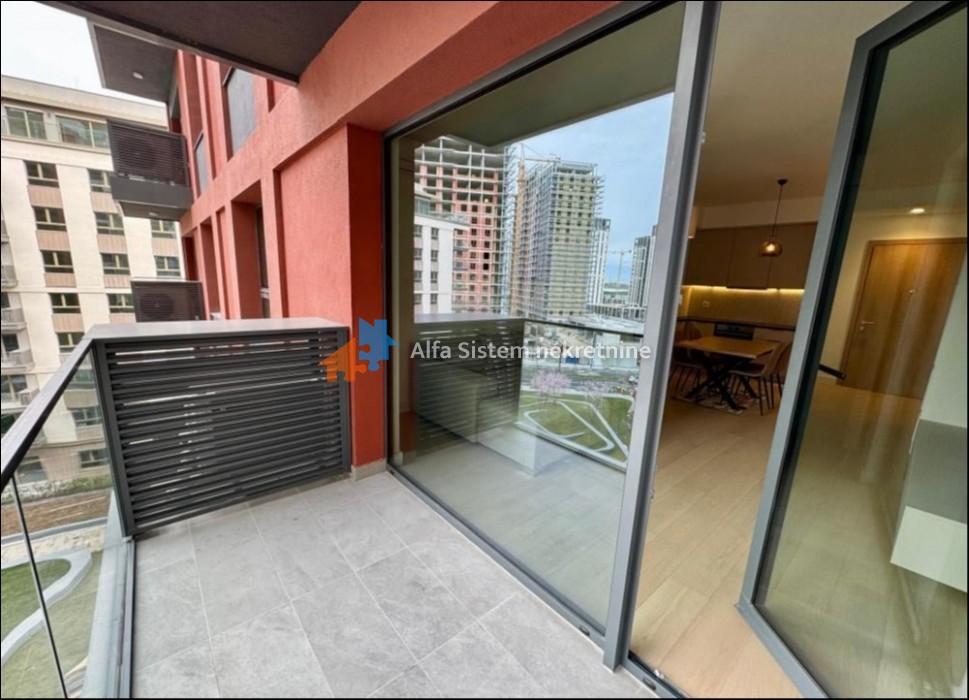 Opis stana: Stan se sastoji od ulaznog hodnika, prostrane dnevne sobe sa izlazom na terasu koja pruža pogled na reku Savu, kuhinje sa trpezarijom, spavaće sobe, kupatila i vešernice. Stan je neuseljavan i kompletno opremljen luksuznim nameštajem.